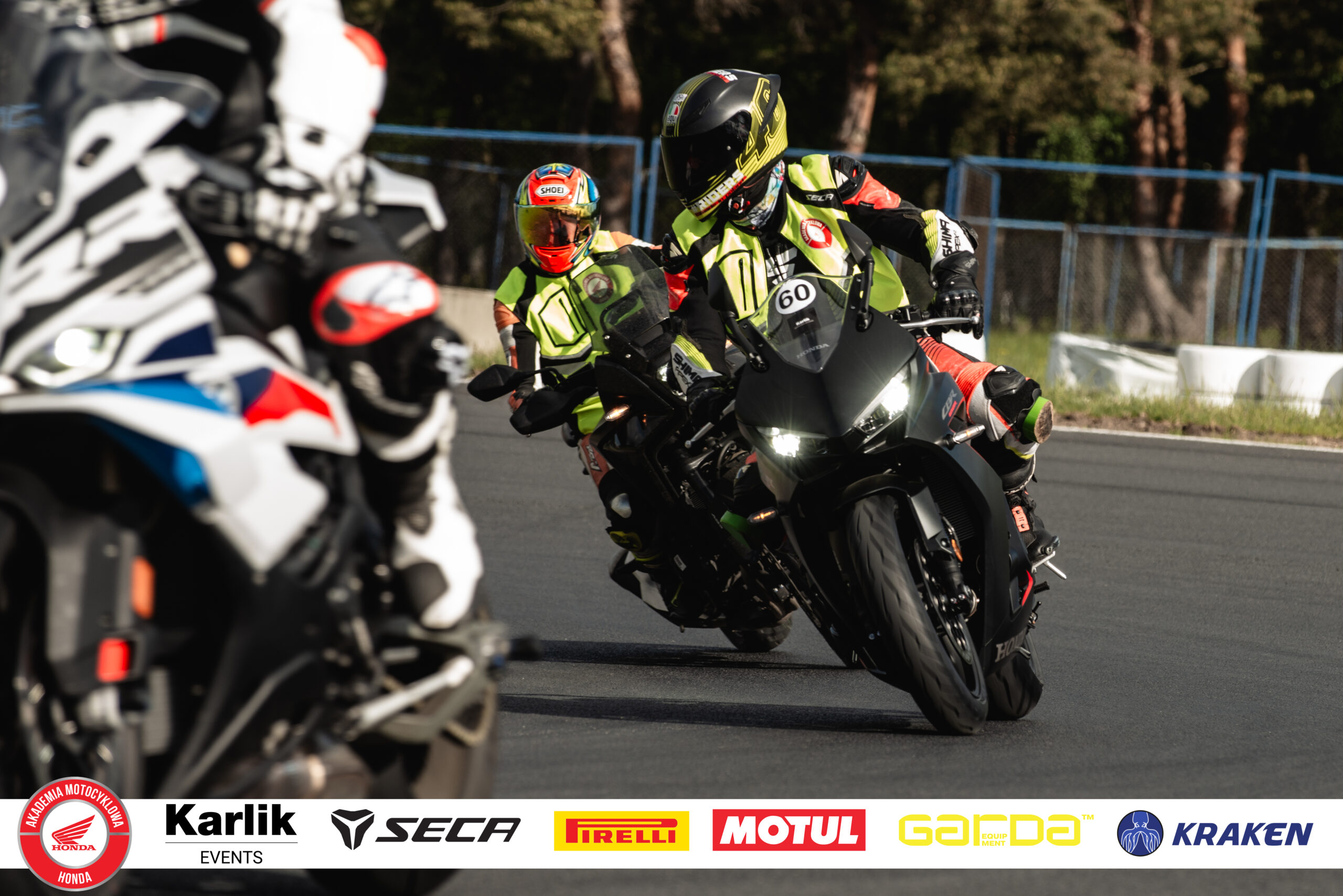 Patryk jest z motocyklem związany od zawsze. Jak u większości — zaczynał od motorowerów, później przyszło prawo jazdy i „duże” motocykle, a bardzo szybko także praca instruktora. Już w wieku 20 lat został instruktorem nauki jazdy na motocykle, a kilka lat później naturalnym krokiem była rywalizacja sportowa. Od 2019 roku regularnie ściga się na torach asfaltowych. Aktualnie startuje w klasie mistrzowskiej Supersport 600, wielokrotnie stając na podium. Wcześniejsze sezony to liczne tytuły i zwycięstwa m.in. w Pucharze Polski oraz Mistrzostwach Pitbike i klasach Sport300. Sportowe doświadczenie przekłada bezpośrednio na szkolenia — Patryk uczy płynności, precyzji i świadomej kontroli motocykla, ale zawsze z naciskiem na bezpieczeństwo i technikę, którą można realnie wykorzystać na torze i poza nim. Na treningach stawia na konkretny feedback, spokojną komunikację i budowanie pewności siebie krok po kroku.
