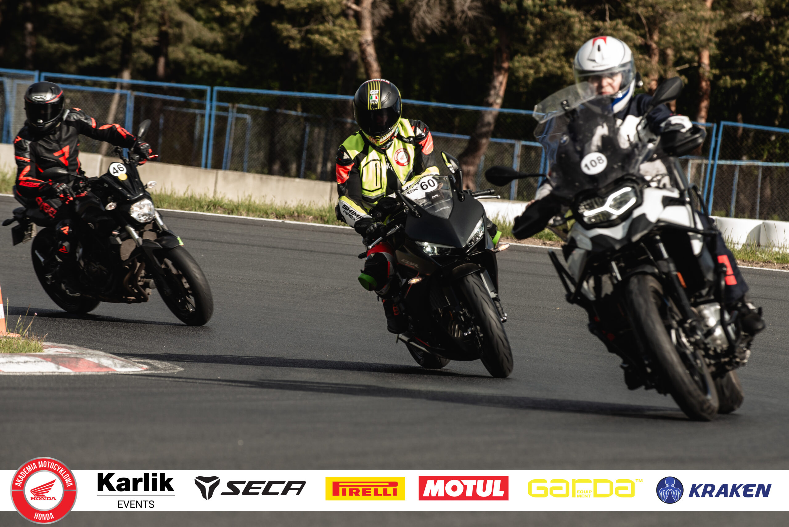 Dużą uwagę przykładamy na prawidłową linię przejazdu. Nauczysz się jak „projektować” zakręty oraz jak prawidłowo patrzeć w zakręcie, aby unikać zagrożeń drogowych. Na etapie II i III poznasz zaawansowane techniki jazdy i nauczysz się panować nad motocyklem przy nieco większych prędkościach. Uczestników dzielimy na małe grupy szkoleniowe a do każdej przypisany jest trener, do którego będziesz mógł się zwrócić z pytaniem w każdym momencie trwającego szkolenia.